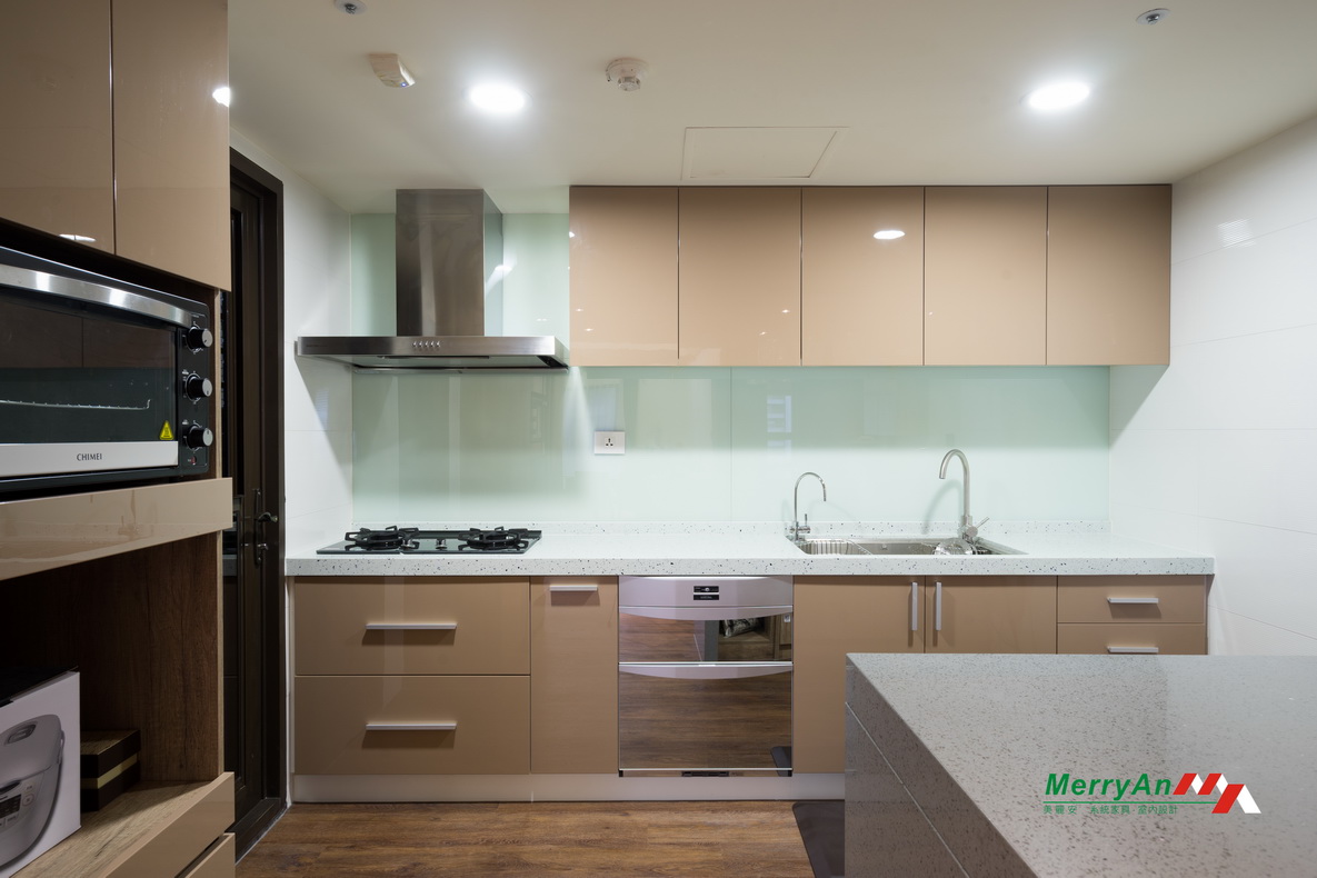 此外,美麗安的設計師在廚房系統家具的設計上也充分考慮到了美觀與實用性的結合,使用耐用且容易清潔的材料,確保了廚房不僅功能全面,而且維護簡便,能夠抵抗日常的磨損和污染。